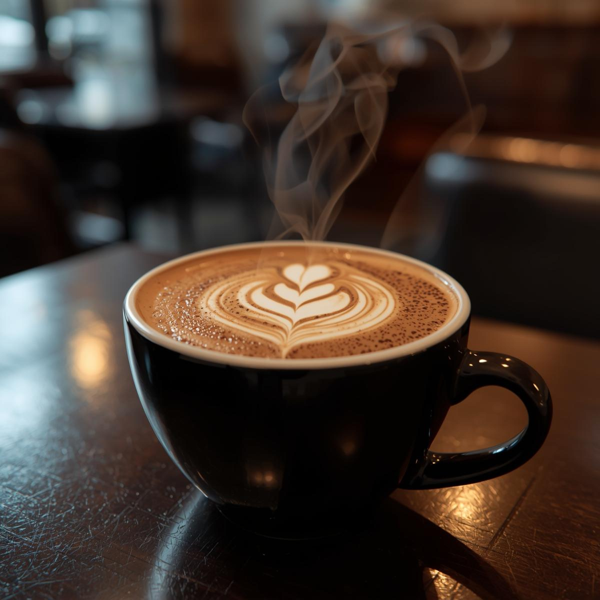 Yoğun espresso, bol buharda ısıtılmış süt ve ince bir süt köpüğü katmanı.
