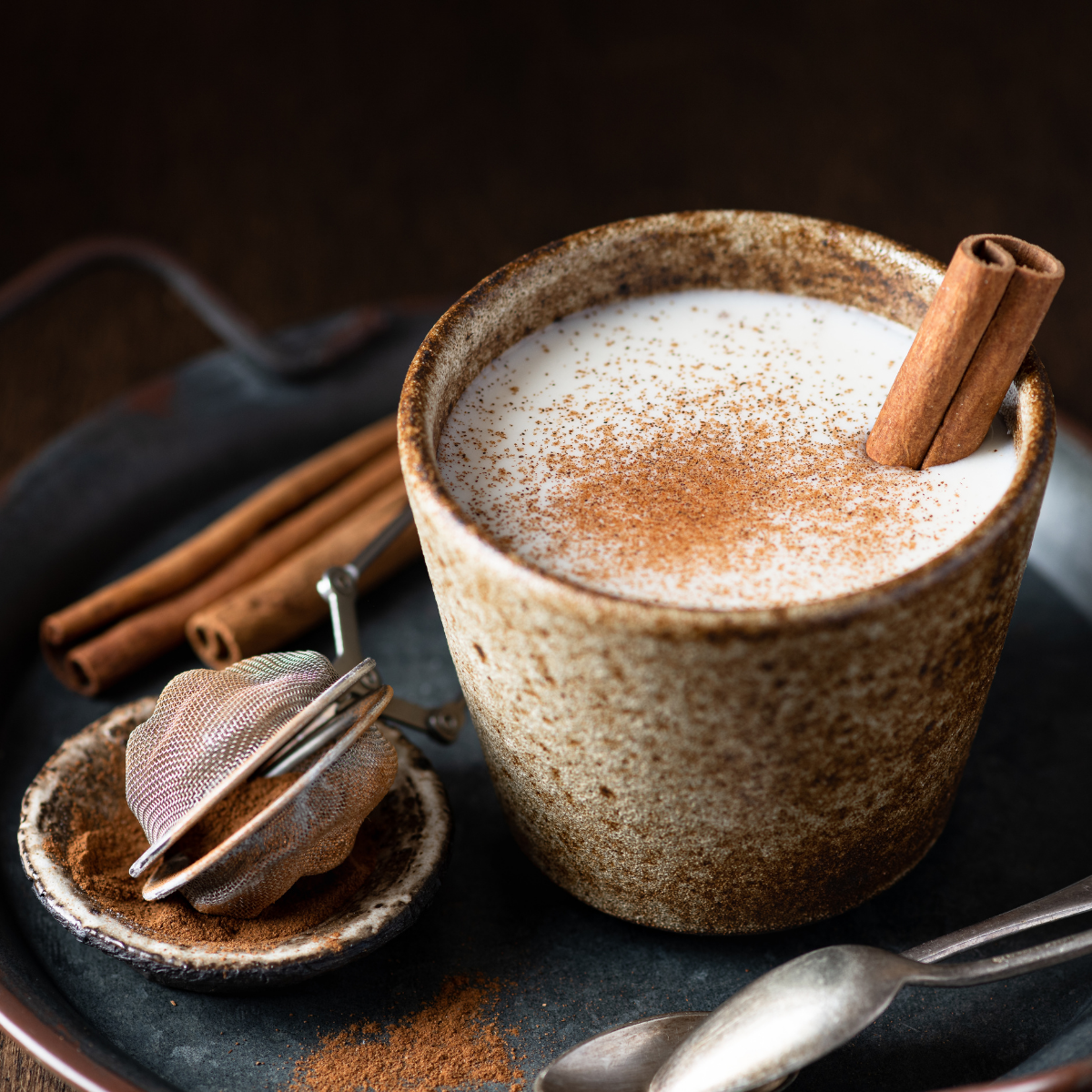 Traditional, milky, and foamy hot drink, served with cinnamon.